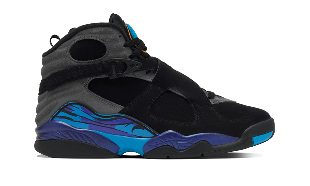 Las Air Jordan 8 Retro Aqua combinan diseño audaz y herencia deportiva. Con su inconfundible mezcla de negro, aqua y púrpura, este modelo legendario lanzado originalmente en 1993 regresa con materiales premium, correa cruzada y la clásica mediasuela con detalles vibrantes. Una silueta imprescindible para fans de Michael Jordan y amantes del streetwear que buscan una zapatilla con carácter, historia y estilo retro.